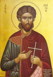 «Ο άγιος Πλάτων ήταν από τη χώρα των Γαλατών, από την πόλη της Αγκύρας,αδελφός του αγίου μάρτυρα Αντιόχου. Επειδή ομολόγησε την πίστη του στον Χριστό,νεαρός ακόμη, οδηγήθηκε στον ηγεμόνα Αγριππίνο. Και κτυπιέται από δώδεκαστρατιώτες και απλώνεται πάνω σε χάλκινο πυρωμένο κρεβάτι, ενώ από πάνω τονράβδιζαν. Και καίγεται στις μασχάλες και στα πλευρά από πυρωμένες σφαίρες, ενώαπό την πλάτη του έβγαλαν μία λουρίδα δέρματος, ενώ στη συνέχεια του έξυσαν τιςσάρκες και τις πλευρές τόσο πολύ, ώστε αλλοιώθηκε η όψη του. Και τότε δέχεταιτο τέλος με το ξίφος».